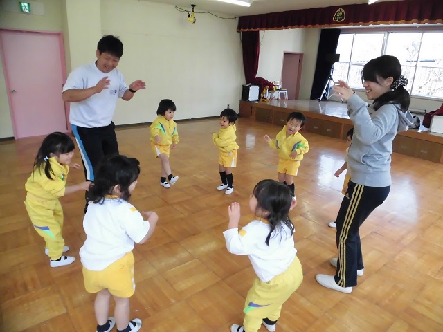 青鬼さんが登場!!ひよこ組のお友達は驚き、一生懸命